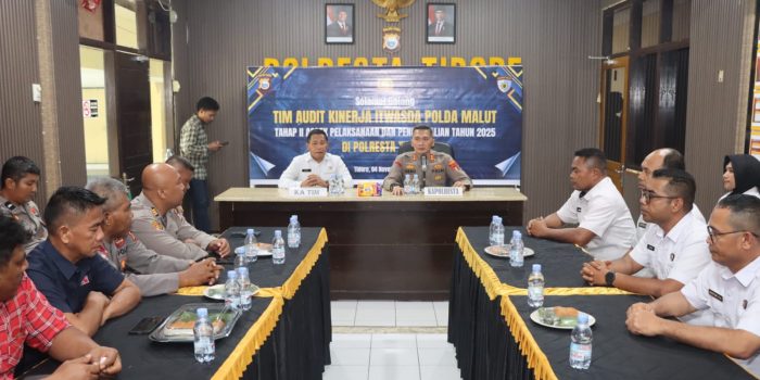 GONONE.ID.TIDORE- Polresta Tidore Kepulauan menerima kunjungan Tim Audit Kinerja Itwasda Polda Maluku Utara dalam rangka pelaksanaan Audit Kinerja Tahap II yang berfokus