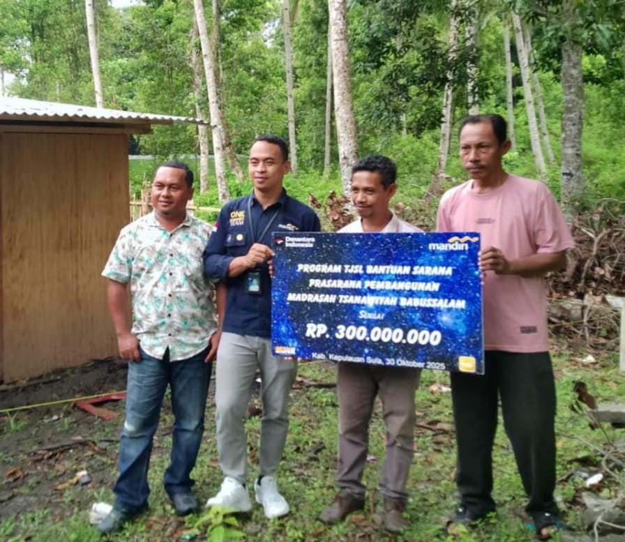 Melalui kantor cabang Ambon, Bank Mandiri menyalurkan bantuan senilai Rp300 juta untuk pembangunan fasilitas pendidikan di Madrasah Tsanawiyah (MTs) Babussalam, Desa Waiboga, Kabupaten Kepulauan Sula. Bantuan tersebut diserahkan secara langsung oleh Moch. Arif Sulaiman, didampingi Julio Giemner Supamena sebagai perwakilan Mandiri Cabang Ambon, dan diterima oleh Kepala Madrasah, Rustam Tidore, pada Kamis (30/10/2025).