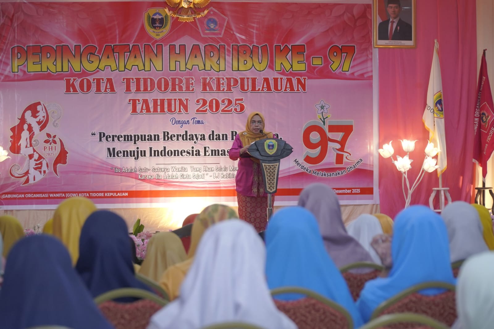 Hal tersebut menjadi ungkapan refleksi peringatan Hari Ibu yang disampaikan Ketua Tim Penggerak PKK Kota Tidore Kepulauan Hj. Rahmawati Muhammad Sinen yang juga selaku Ketua Dewan Penasehat Gabungan Organisasi Wanita (GOW) dalam sambutannya pada Peringatan Hari Ibu ke 97 Tahun 2025 yang dilangsungkan di Aula Sultan Nuku, Senin (22/12/2025).