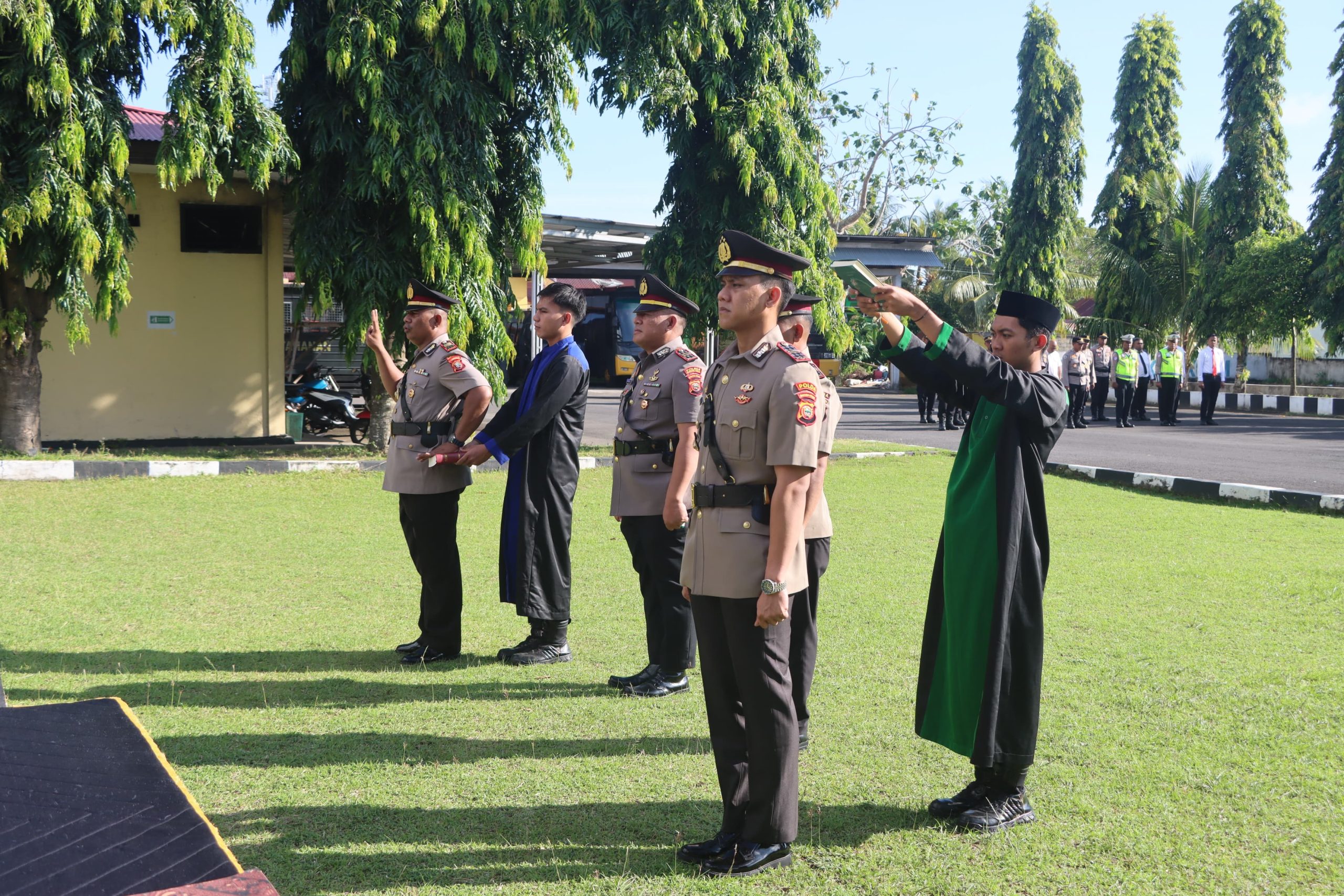 Prosesi dilanjutkan dengan pengambilan sumpah jabatan, penandatanganan berita acara serah terima, serta penandatanganan fakta integritas oleh para pejabat yang dilantik. Suasana berlangsung tertib, mencerminkan tradisi kedisiplinan di tubuh Polri.