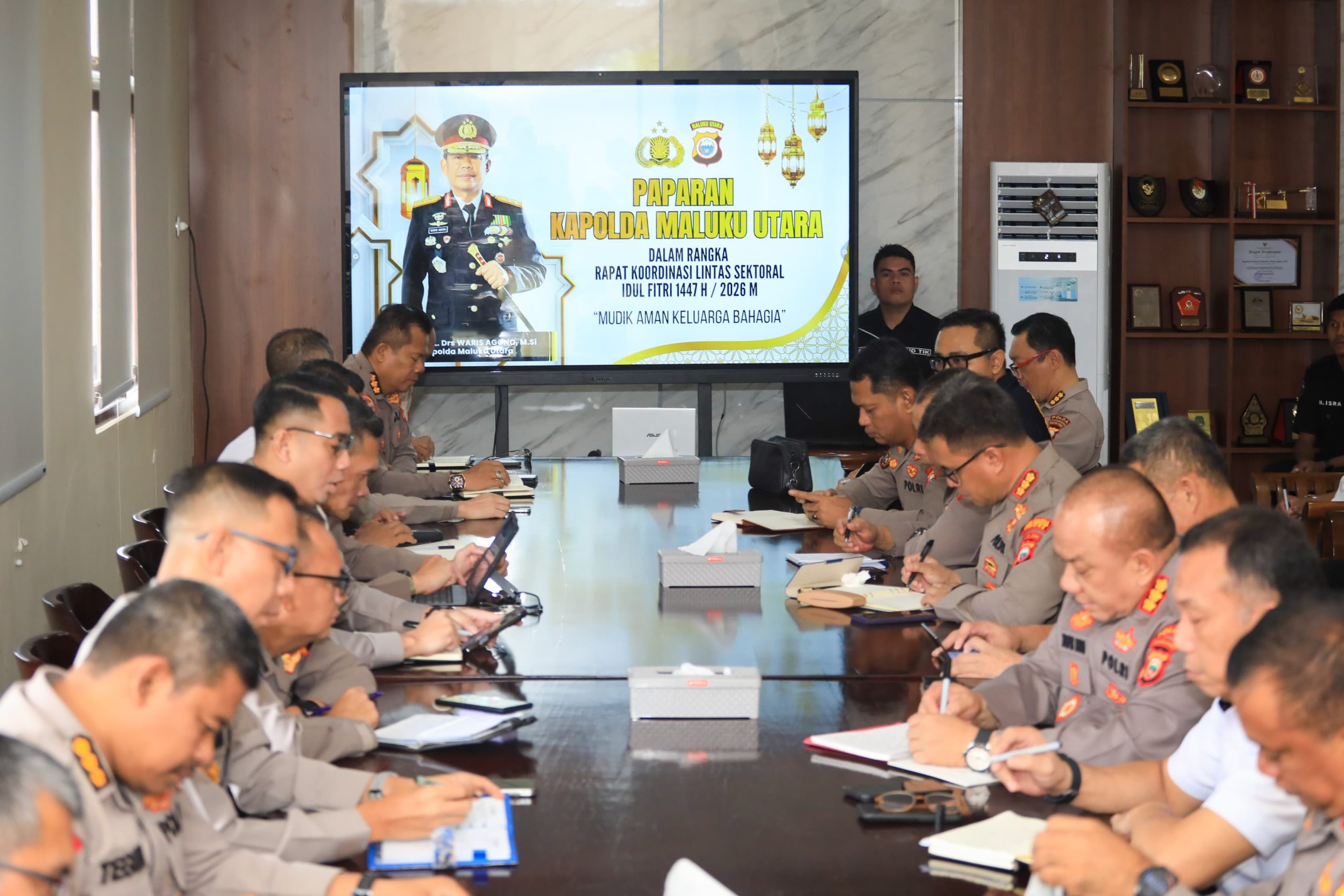Gonone.id – Menjelang perayaan Idul Fitri 1447 Hijriah, jajaran kepolisian di Maluku Utara mulai mematangkan langkah pengamanan. Salah satunya melalui rapat koordinasi lintas sektoral yang digelar oleh Polda Maluku Utara di ruang Rapat Utama (Rupatama), Rabu (4/3/2026).