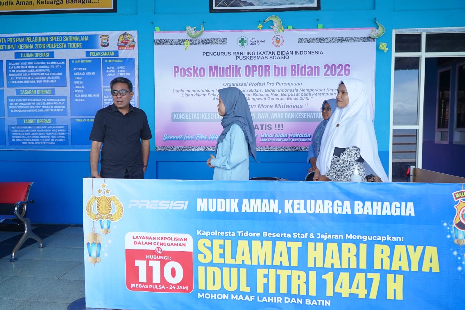 Selain aktivitas arus mudik, Wawali Tidore juga memantau beberapa posko keamanan dan posko kesehatan untuk memastikan tetap beroperasi melayani serta menjamin Kesehatan dan keamanan masyarakat saat melakukan mudik idul fitri 1447 Hijriyah/2026 Masehi.(NN)