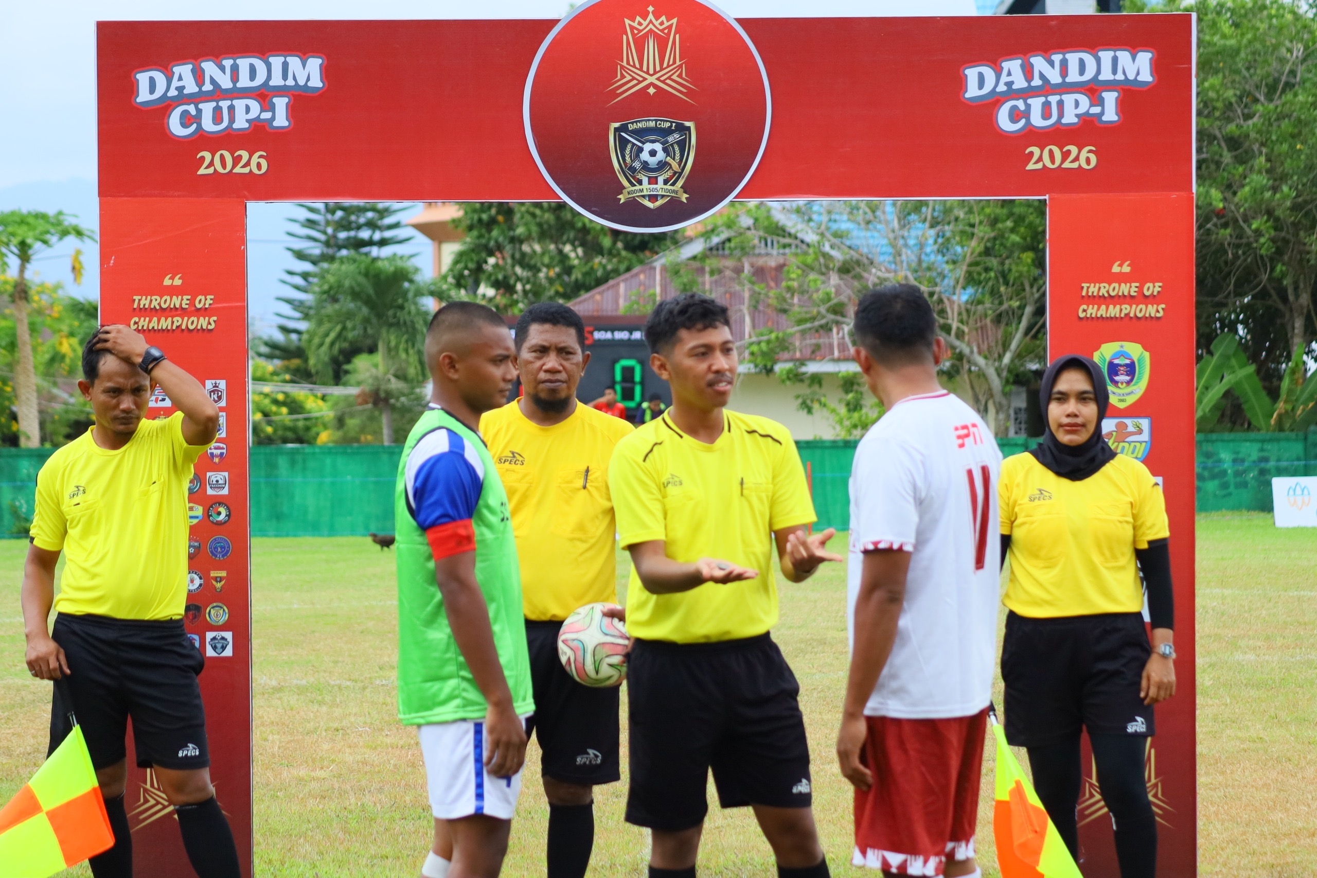 Gonone.id — Laga kedua Open Tournament DANDIM CUP I 2026 bertajuk “Throne of Champions” yang digelar pada Senin (6/4/2026) sore berlangsung sengit. Pertandingan yang mempertemukan SPN FC dan SOASIO Junior Prins ini berakhir dengan kemenangan tipis 2-1 untuk tim asal Soasio.