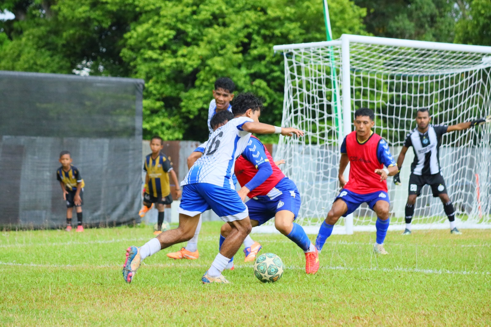 Babak kedua berlangsung dengan ritme yang tak kalah intens, meski hujan perlahan mereda. Kedua tim tetap mengandalkan permainan pendek dan sesekali mencoba peruntungan lewat tendangan jarak jauh. Pergantian pemain dilakukan, termasuk masuknya nomor 53 di kubu Putra FC, untuk menjaga tempo permainan.